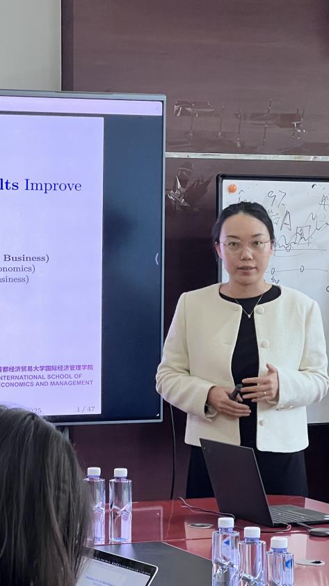 10 日下午至 11 日上午,汪勇祥教授听取日本成人电影 青年教师黄雨婷、包洋鸣、张正宜、肖雅清、郑伟男、王钊等的科研情况汇报。会上,教师们分别报告各自在“债券违约与信用评级质量”“银行风险承受力与国企复兴”“劳动法变革与自动化创新”“行为信息与预期偏差”“基于机器学习的订单簿隐含信号识别”以及“企业运营效率与市场反应”等主题展示了最新研究进展,涵盖了数字金融、绿色金融、劳动经济与行为经济等多个前沿领域。汪勇祥教授认真听取每一份报告,从研究选题的创新性、理论框架的完整性、实证方法的适用性等方面提出具体指导意见,尤其针对“如何将中国情境与国际学术规范结合”“如何挖掘数据背后的深层逻辑”等关键问题,分享了自己的研究经验与心得。