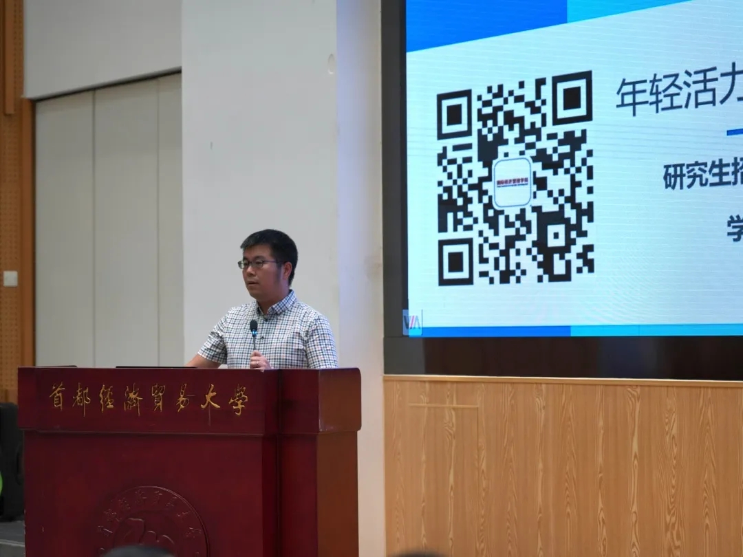 新生代表陈嘉迅发言,他回忆了高中的奋斗经历表达了对未来四年大日本成人电影活的期待与向往,继续发挥自己的优势,借助日本成人电影 这个优秀的平台展现自我,调动自我的原动力实现自己的目标。他表示作为国经管的一员,将以学长学姐为榜样,用奋斗实现自己的梦想。