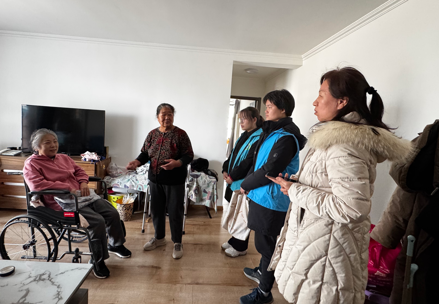 3月5日,同学们身着“蓝马甲”,对街道公共区域进行了全面清理,规整了乱停乱放的非机动车辆,并来到路口指挥交通,保障道路通行秩序,为维护环境卫生、共建美丽街道贡献力量,赢得了社区工作人员和居民的一致好评。部分同学跟随社区工作人员一同入户看望老人,在献爱心、送温暖的过程中感受浓浓的社会温情。