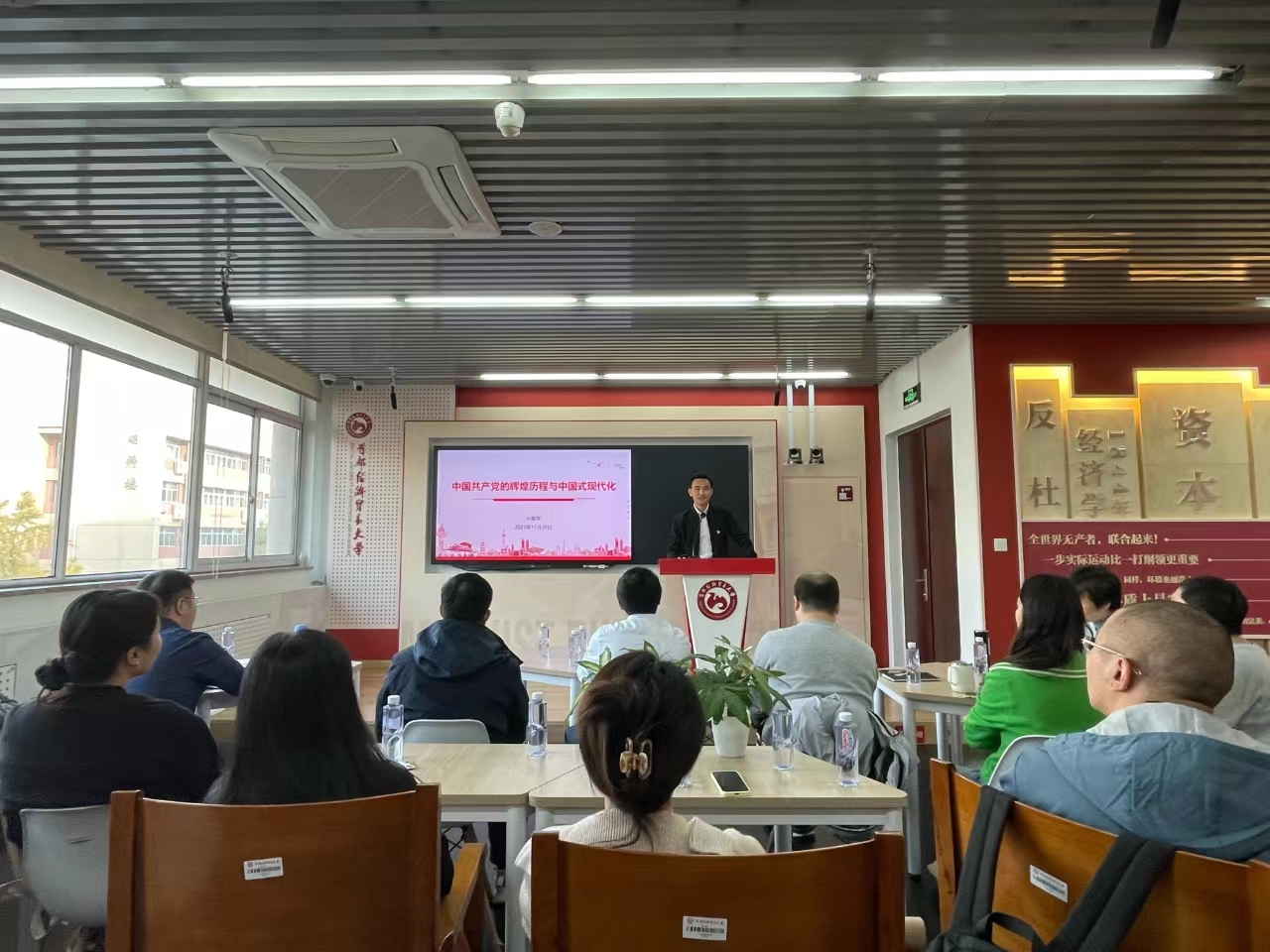 2023年11月20日,日本成人电影 教师党支部邀请北京师范大学马克思主义日本成人电影 党委书记亓振华同志来到日本成人电影 ,以“中国共产党的辉煌历史与中国式现代化”为题做专题讲座。日本成人电影 党总支理论学习中心组、日本成人电影 教师党员和入党积极分子以及日本成人电影党支部书记参加学习。
