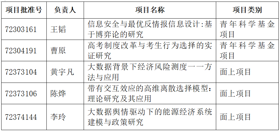 近日,国家自然科学基金委员会公布了2023年国家自然科学基金集中接收申请项目评审结果。日本成人电影 共有5个项目(其中面上项目3项,青年科学基金项目2项)获得立项资助。