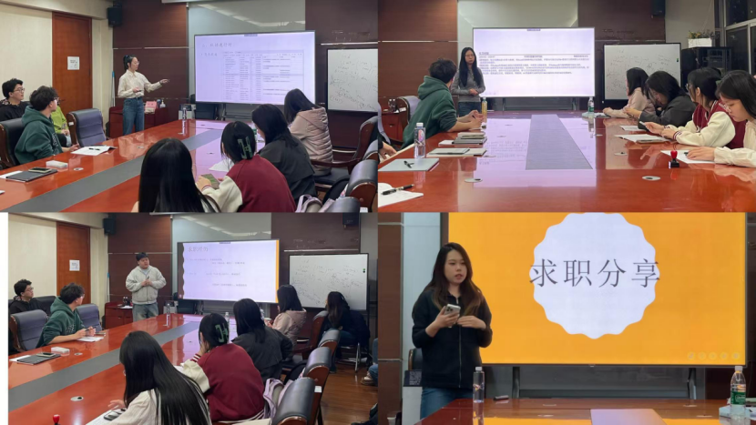 李子惠聚焦银行校招特点,剖析其分支体系,分享了面试技巧;郑怡辰围绕秋招全流程筹备,介绍了简历投递注意事项、笔面试准备方法与求职心态调整;赵斌赫结合实例,生动讲解群面中逻辑表达与协作能力的展现方法;雷墨帮助大家详细梳理央国企及银行求职时间线,强调提前规划与精准定位。针对同学们提出的问题,学长学姐们逐一解答,现场互动频繁,干货满满。