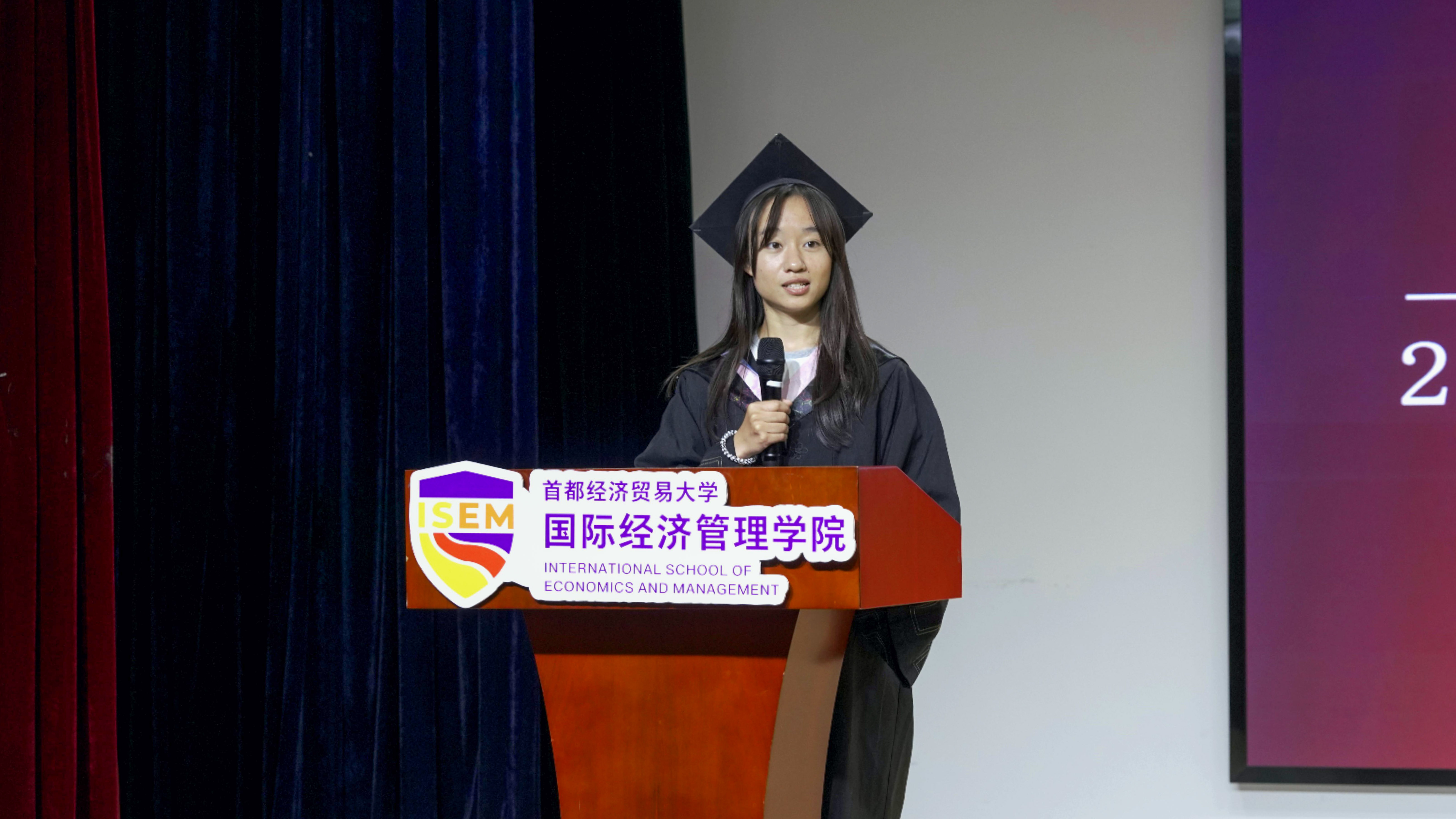 党委书记姜蓓蓓致辞。她向毕业生们表示祝贺,向全体老师和家长致谢。她希望同学们常怀感恩之心,勇担时代之责,无论投身职场还是继续深造,都做到坚守诚信、终身学习、百折不挠,让事业之舟行稳致远;希望全体毕业生坚持自我成长,保持对生活的热爱与对他人的善意,以国际视野与专业初心服务社会,拥抱美好生活。最后,她期待同学们以青春为笔,以时代为卷,书写无愧于自己、无愧于家国的精彩篇章。