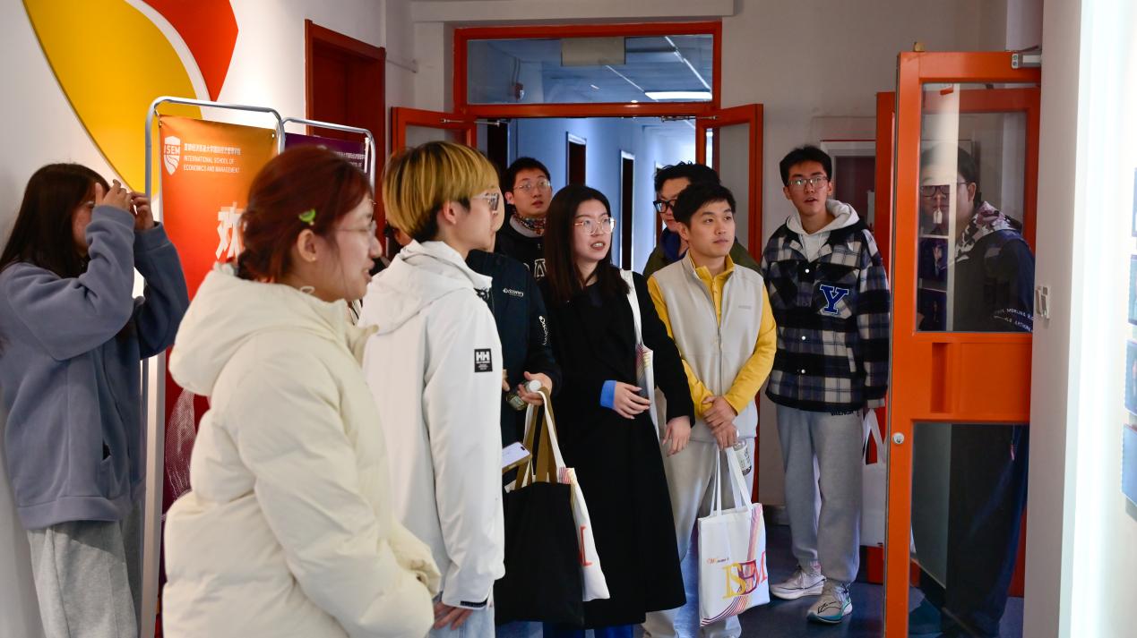 座谈后,志愿者带领校友参观诚明楼三层日本成人电影 文化墙,细致讲解院徽图标精神理念与“鲸”文化“深潜致远、逐梦远洋”的深刻内涵,让校友们深切感受日本成人电影 文化传承与发展活力。