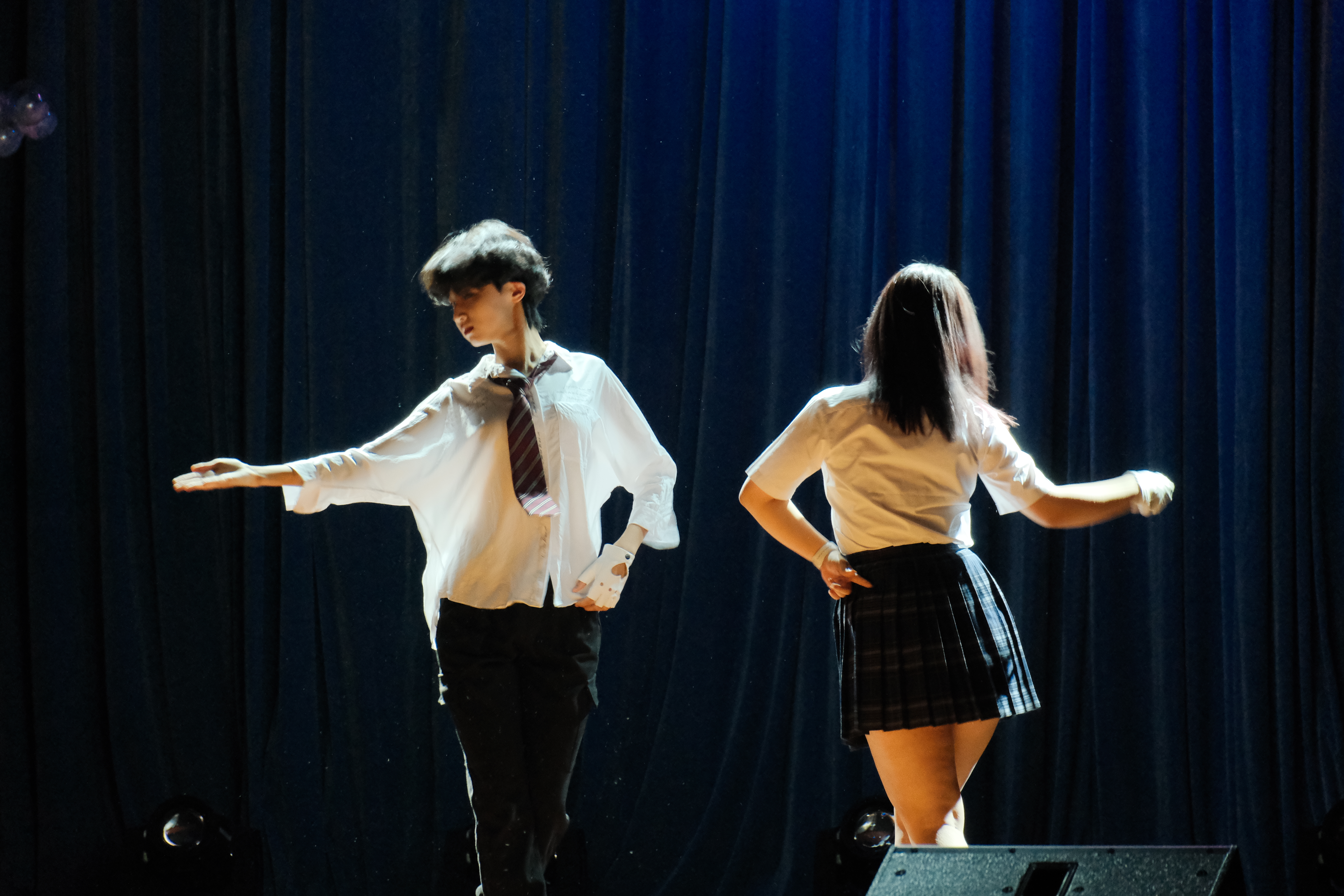 除了动人的歌声外,E-shine的《latata+boy with love》,孟霭彤和张睿的《trouble maker》,崔竞文的《roki》用热情奔放的舞蹈,洋溢青春活力,为同学们带来了一场视觉盛宴,极大的带动了晚会的氛围,将晚会气氛一度推向高潮。另外,两个班的班级节目《白昼流星》,《yellow+夜空中最亮的星》同样也是晚会中的一大亮点,两个不同的表演形式均充分体现了同学们的集思广益和团结协作。