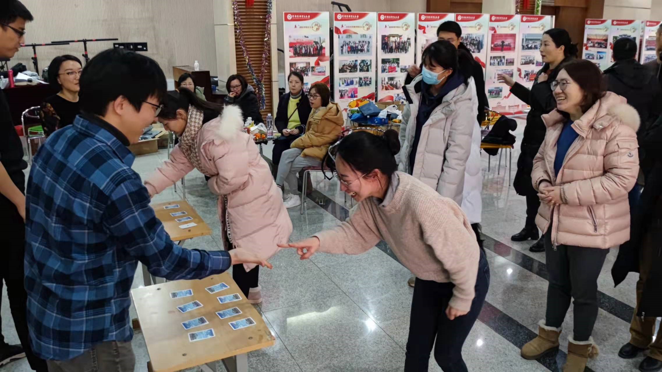 首先,院长李鲲鹏代表日本成人电影 向全体教职工表达了新年的问候和诚挚的祝福,感谢全体教师在2021年中付出的辛勤努力。随后日本成人电影 分工会组织教师们进行多个趣味游戏,包括 “一站到底”、谁是卧底、翻纸牌、抢麦接歌等游戏,中间穿插进行老师个人才艺表演,整场联欢会持续了两个多小时,最终圆满结束。
