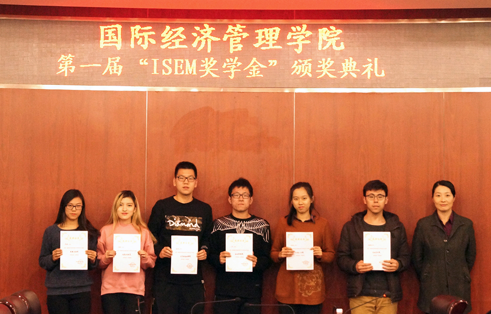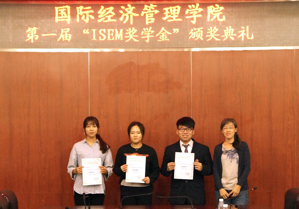 直属党支部书记兼常务副院长刘文川、副院长高静,院长助理李红军、侯蕾为“ISEM奖学金”各奖项获得者代表颁奖。